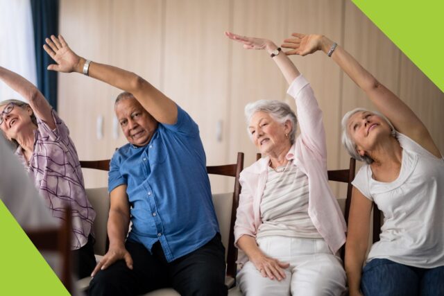 - Functional strength using light weights (optional) to support independence
